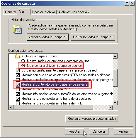 Nota: La carpeta C:\Windows\inf está oculta, puede que necesite habilitar la opción de "Mostrar todos los archivos y carpetas ocultos" y "Mostrar el contenido de las carpetas del sistema"