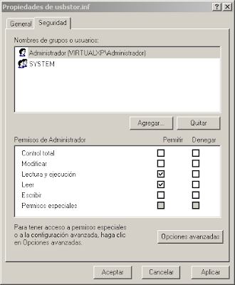 Etapa 1: Cambiar permisos a archivo Usbstor.pnf y Usbstor.inf