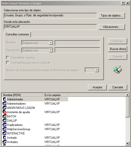 Luego en "Busca ahora"... y de la lista de usuario seleccione el o los usuarios a los que desea bloquear el acceso a los dispositivos de almacenamiento extraíble